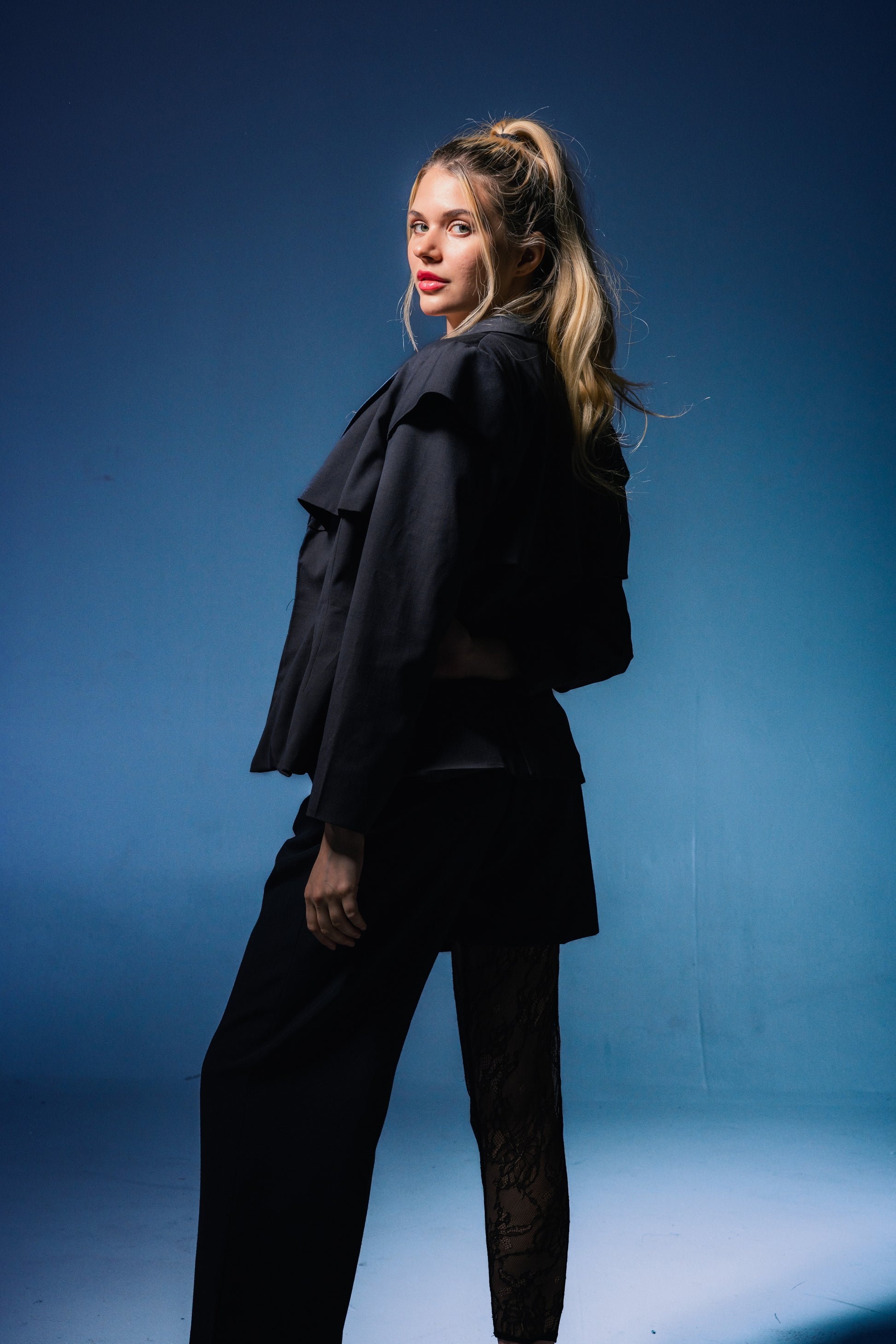 The Reign Jacket is a modern black jacket that will elevate any outfit in your wardrobe. Crafted from 100% wool, the sharp tailoring is balanced by fluid layered detailing across the shoulders. Designed for versatility, The Reign Jacket is known to turn heads.